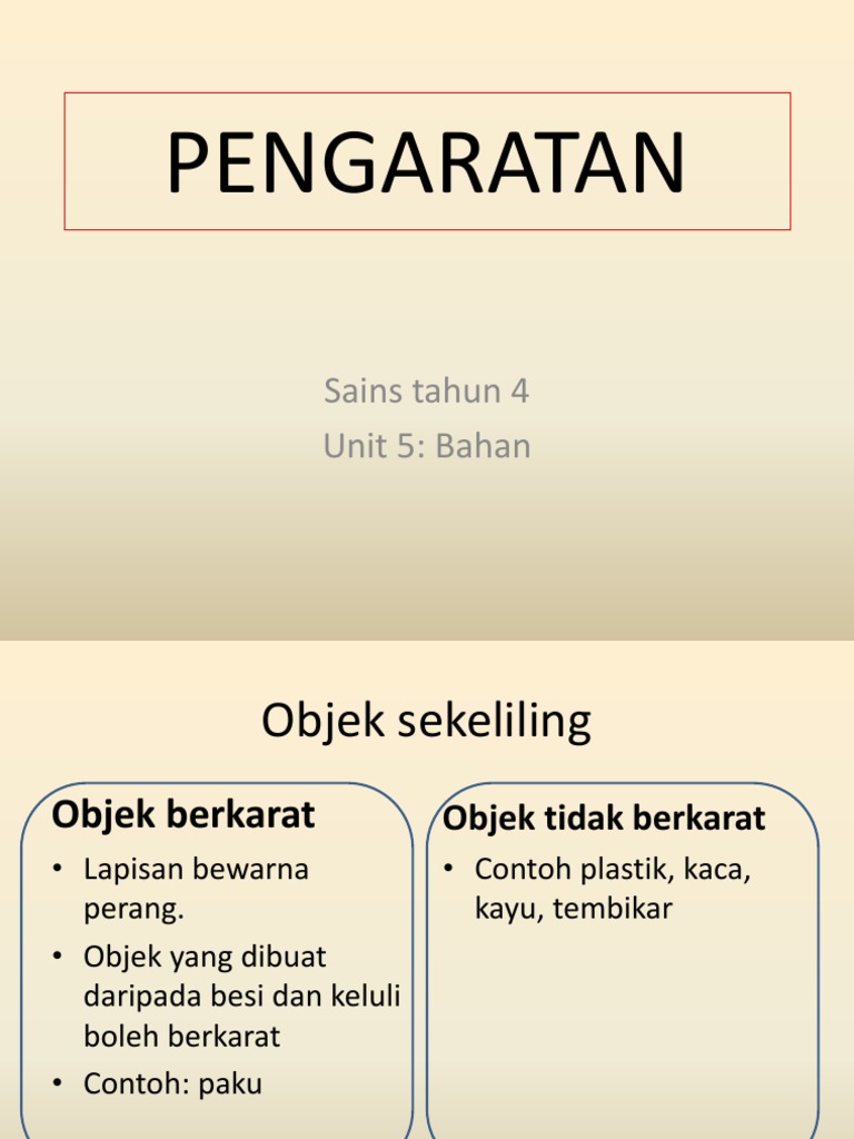 RPT SAINS TAHUN 4 2015 1. Bahan Objek sekeliling Objek berkarat Lapisan bewarna perang. Sains Tahun 5 Latihan Tambahan Haiwan Menjaga Anak dan Telur.